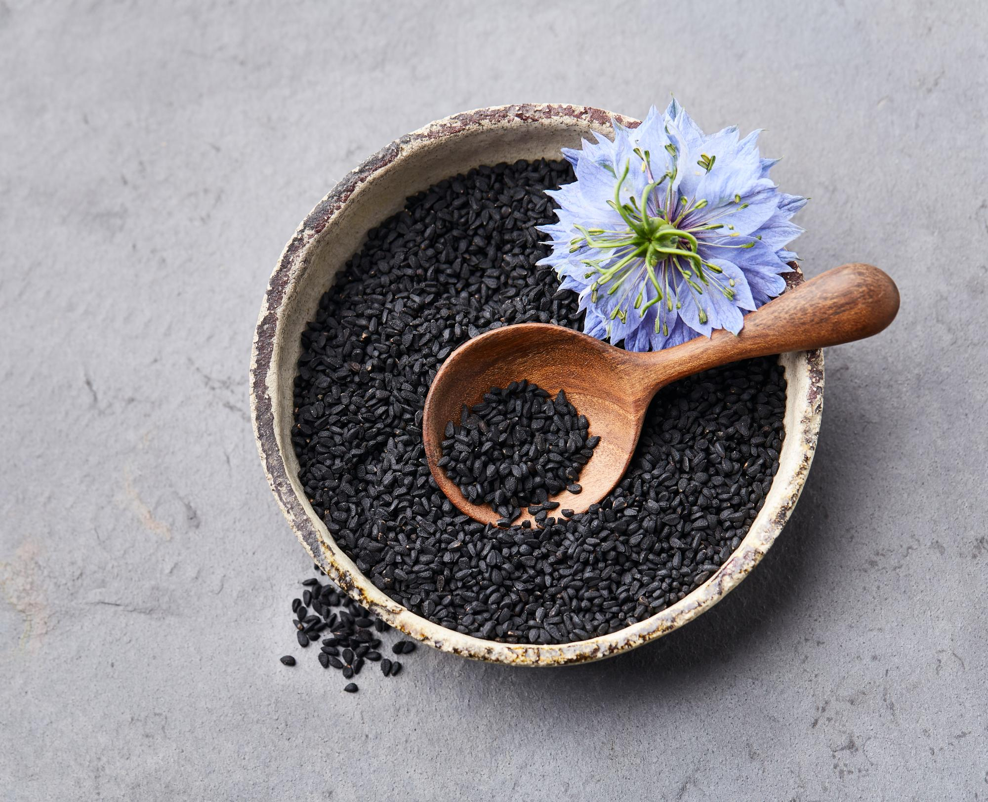 Il cumino nero, chiamato anche coriandolo romano, kalonji o fiore di finocchio, è coltivato per i suoi piccanti semi, utilizzati come spezia e in erboristeria. La pianta di cumino nero si trova nel sud-ovest dell'Asia e in alcune parti del Mediterraneo e dell'Africa, dove ha una lunga storia di utilizzo in diverse tradizioni culinarie ed erboristiche. I semi hanno un aroma simile al finocchio e un sapore piccante che ricorda leggermente la noce moscata, anche se la pianta non è imparentata con nessuna di esse. I semi vengono di solito tostati e macinati come spezia e sono spesso usati in India, nel Medio Oriente e in alcune parti del Nord Africa per insaporire curry, riso, pane e dolci.